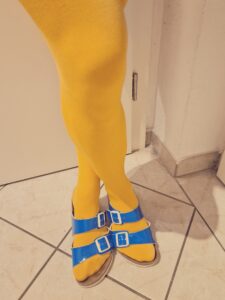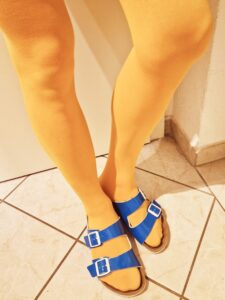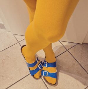 Found these cozy yellow tights at a neighbourhood store – and the go just perfect with those blue arizonas.