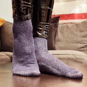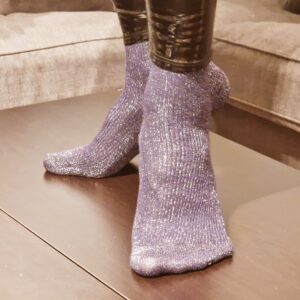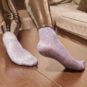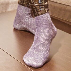 Additionally found those and compared to other sparkling socks they don`t scratch – in fact they are as soft as they get and very tight on my feet – love it!