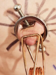 Upon request – a close up of those tortured nipples. With manual 😆