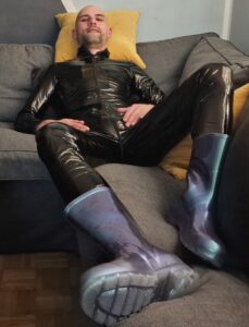 Rupper coated, shiny lycra and shining / shimmering boots. I love it!