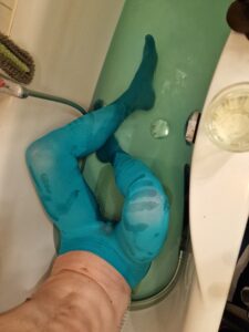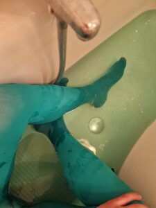 After a long day in those lovely cyan tights, relaxing in the bathtub, creating intriguing handprints that spark imagination