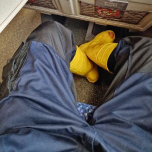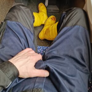 On my way back home, back in those overalls and boots, but with a amazingly well stretched boicunt.