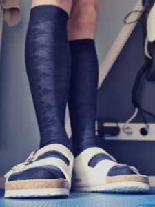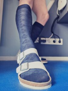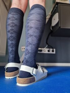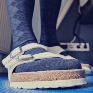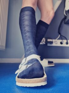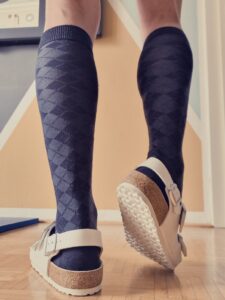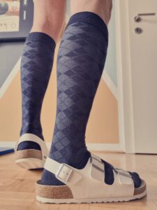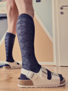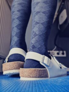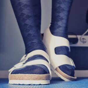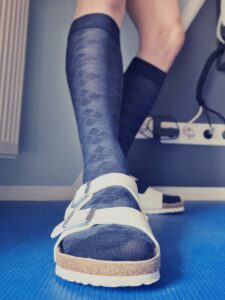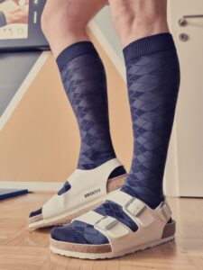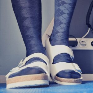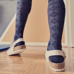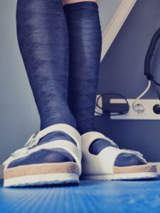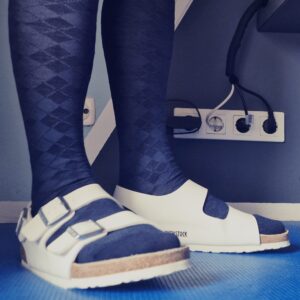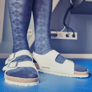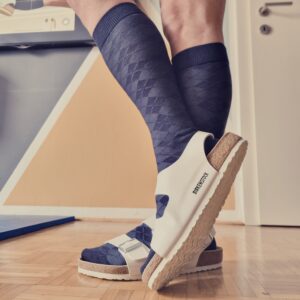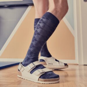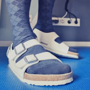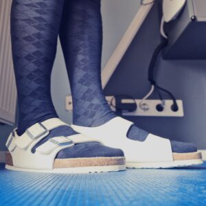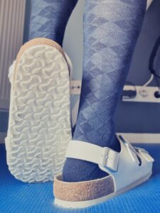 Beautiful Burlington socks and lovely white Birkenstock Milano.